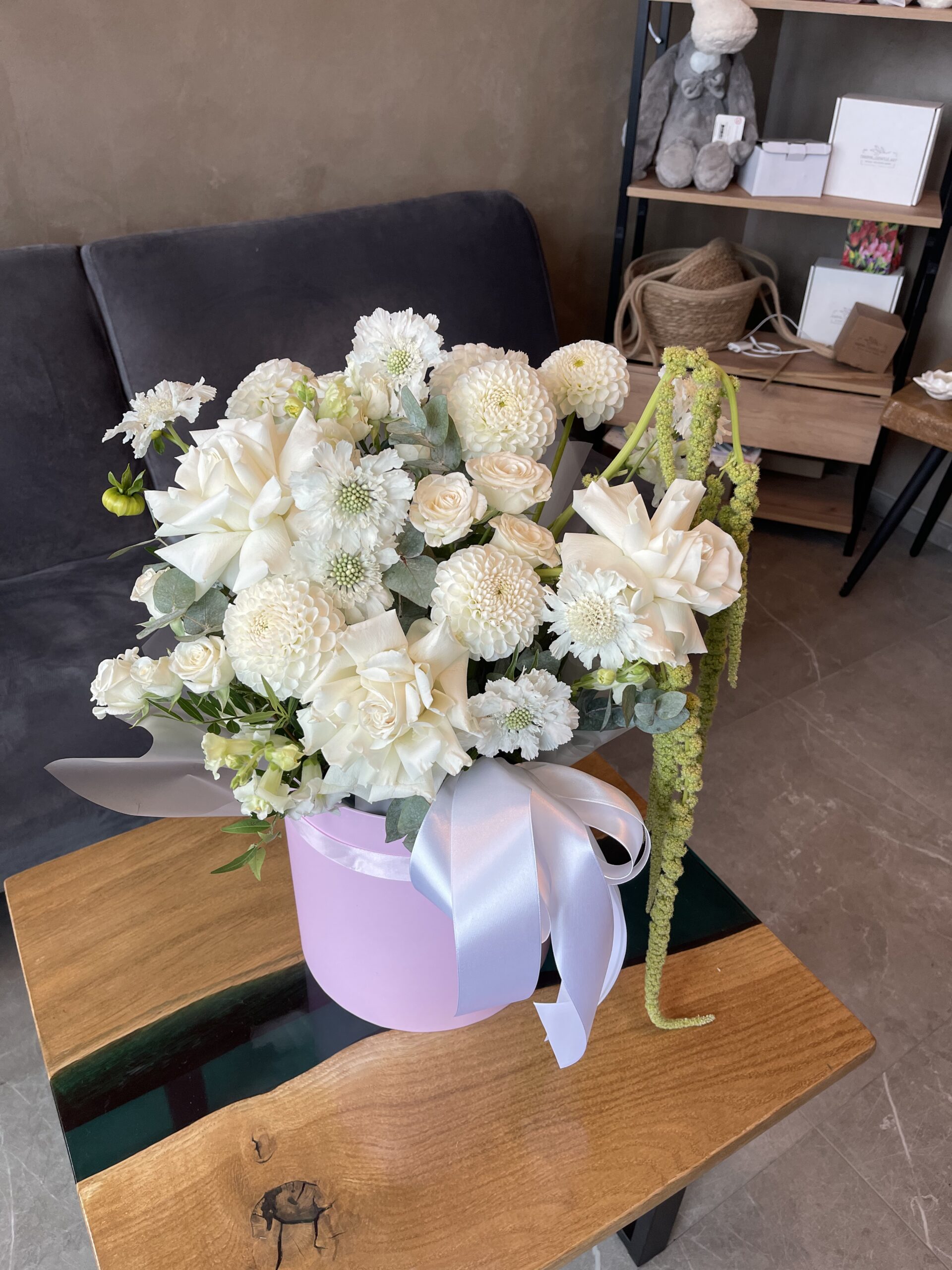 Сборный букет «Воздух» это эссенция нежности, воздушности и любви. Купить сборный букет воздух вы можете с доставкой по Минску или у нас в студии. Прекрасные нежные оттенки этого букета вызовут трепет и благоговение получателя. Любая девушка не просто обрадуется такому букету, а придёт в восторг. Такой эффект вы получаете благодаря французским розам. Нежнейшего розового оттенка. Вкупе с розовыми бахромчатыми диантусами, а также благостными кустовыми розами белого и персикового цветов. Букет пышный , воздушный, утончённый!
